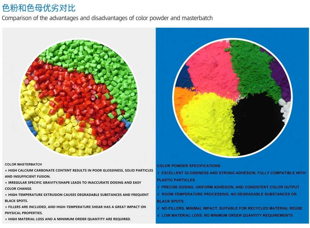 1. Modularna zasnova: Omogoča hitro spremembo barve v 5 minutah; Lahko se napolni z dodatnimi materiali; Združljivo s pigmentom in masterbatchom, kar omogoča večnamensko uporabo v enem stroju.